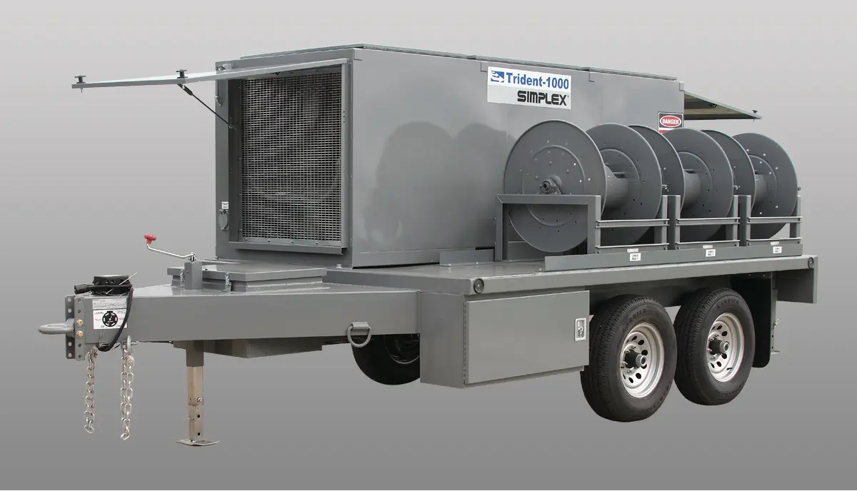 The Trident Trailer Load Bank is ideal for field testing in the performance of start-up and commissioning activities, service contracts and engine generator maintenance. The Trident family comprises load modules from 600-1250kw integrated with trailers, cable storage and connection accessories and digital controls. The Trident 1250 is a single load module product. The Trident 2500 is a two-load module product, 1500- 2500kw rated. The Trident is a single or dual voltage Load Bank suitable for all common 50-60-400 hertz voltages up to 600V.